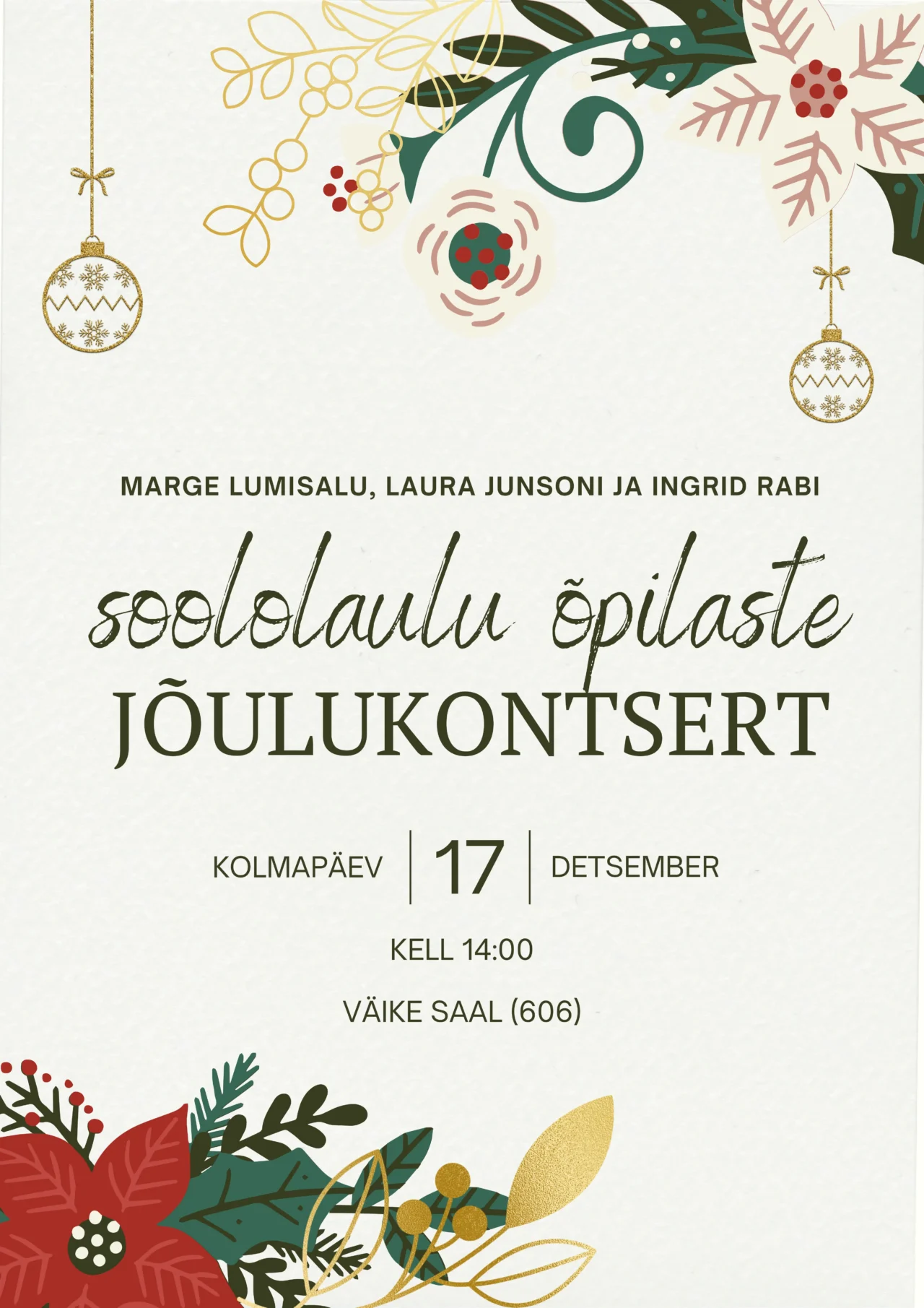 Laura Junsoni, Ingrid Rabi ja Marge Lumisalu soololaulu õpilaste jõulukontsert